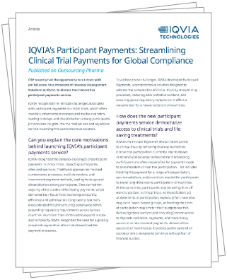 Financial burdens are cited as one of the main barriers to clinical trial recruitment and retention, with traditional methods proving unreliable, complicated and slow. For trial sites and sponsors, the administration burden can be overwhelming, especially on a global scale. Discover how IQVIA’s Participant Payment service is transforming the participant payment landscape, simplifying the process and driving clinical trial success, by offering: